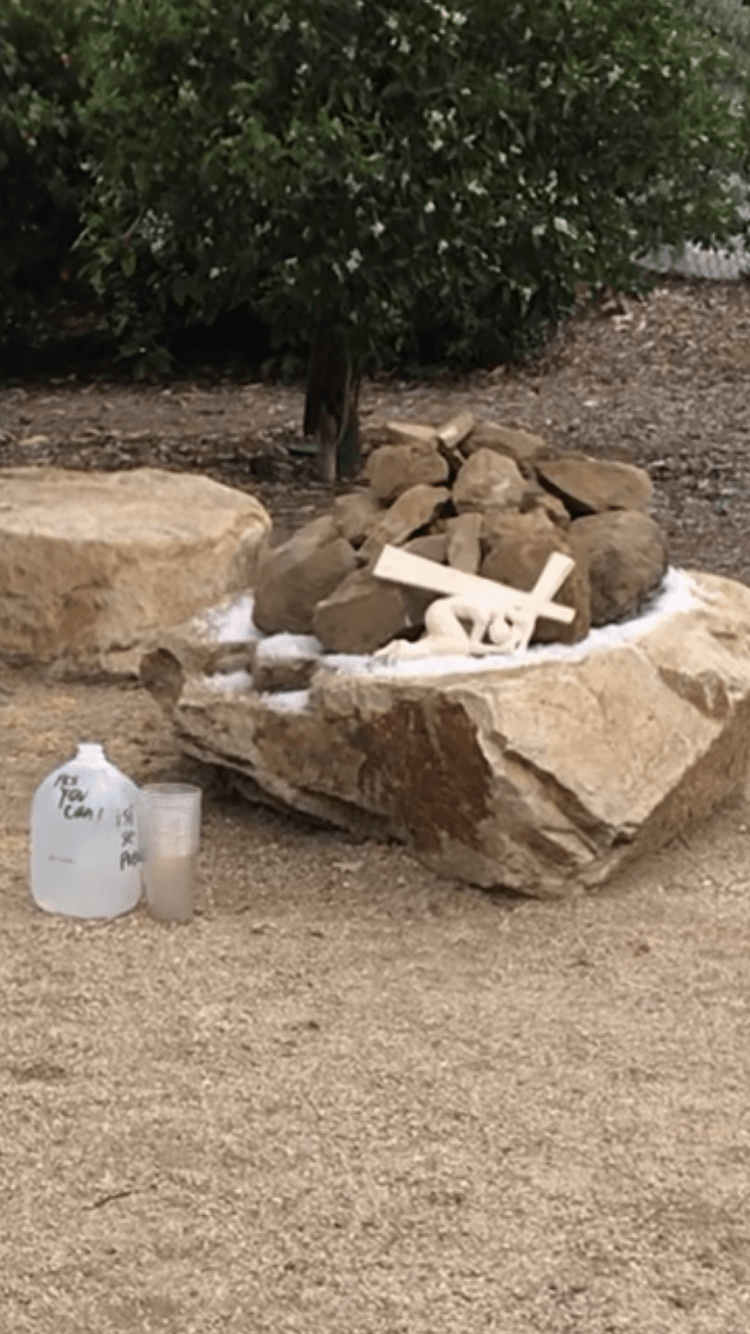 Small bags containing salted water were hung on the lower part of the fence, representing the tears and sweat of the continuous efforts of His people in an attempt to close the gap among the churches, people and internal walls.